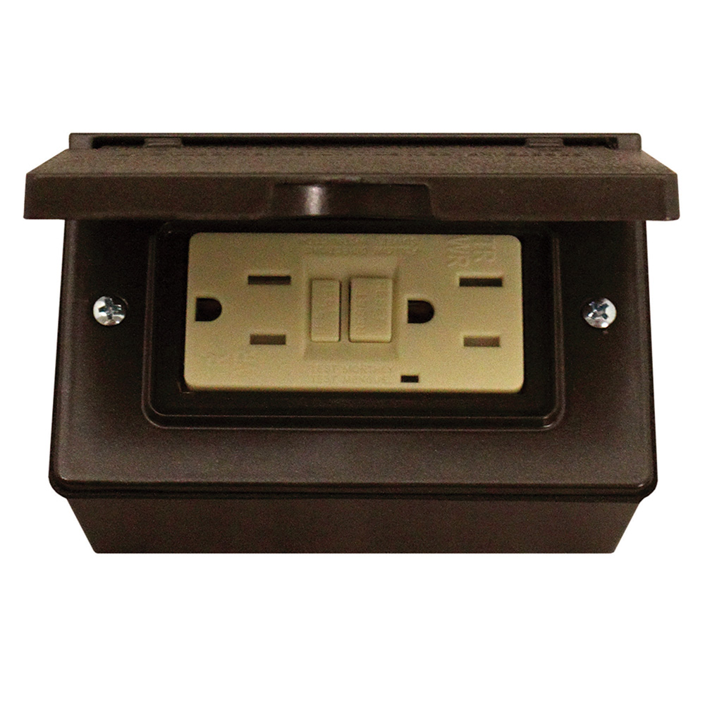 Includes Horizontal GFCI Cover, Three Hole Rectangular Box, Receptacle, Gasket, Closure Plugs, Mounting Hardware