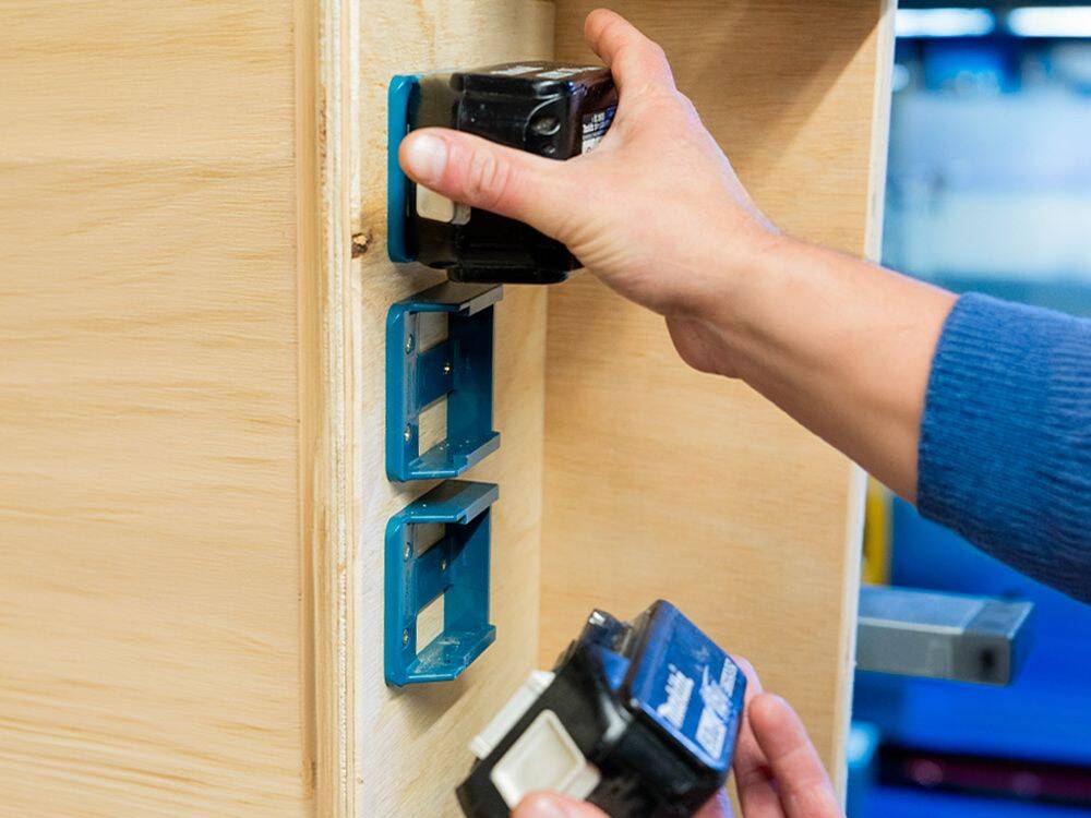 StealthMounts Battery Mounts for Makita 18v LXT cordless batteries keep your batteries organized and exactly where you need them. Batteries fit by clicking into the holder and are only released by pressing the release button on the battery.