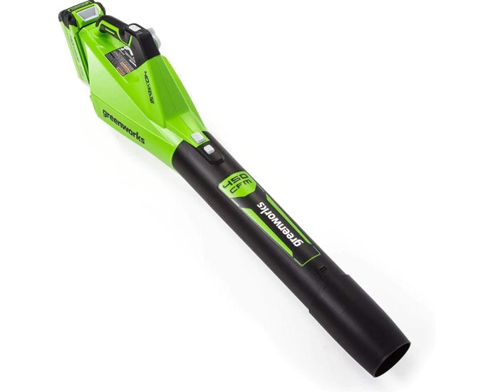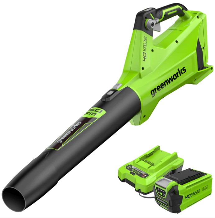 Cruise control for precise speed control and user convenienceCompatible with Greenworks 40V Li-Ion system for higher efficiency and longer run time with an assortment of tools to complete your yard work.INCLUDES:(1) 40V Cordless Leaf Blower