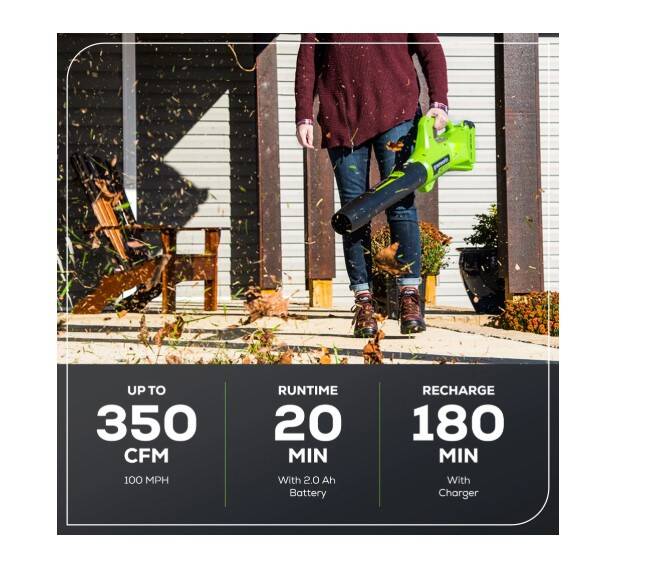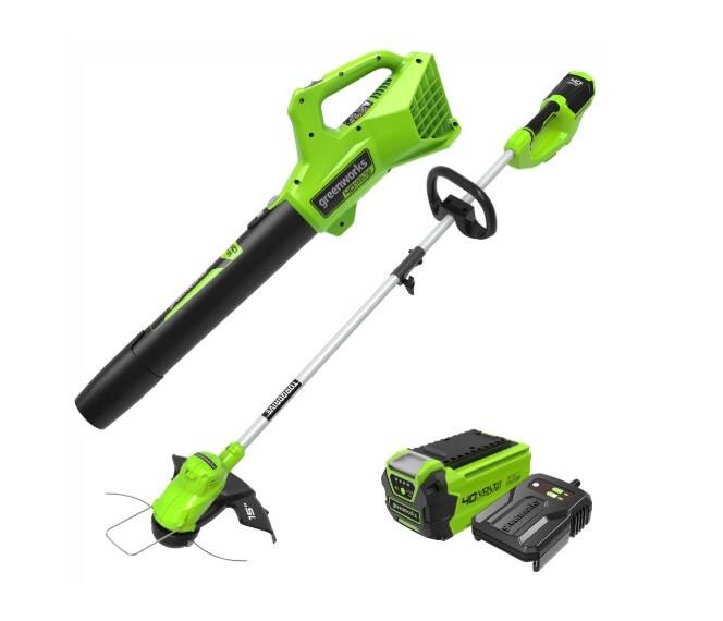 | Includes | 40V 15" String Trimmer 40V 350 CFM Leaf Blower (1) 2.5 Ah Battery (1) Charger |