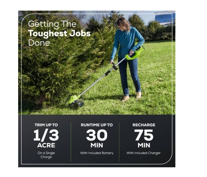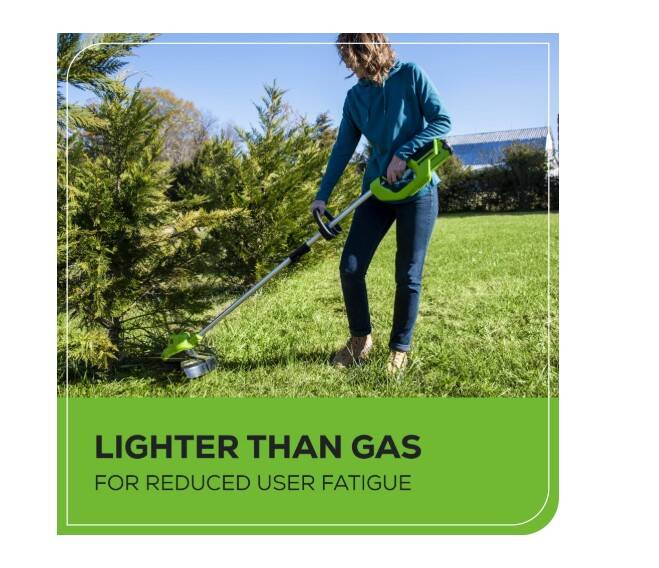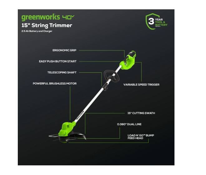 Cordless outdoor power tools are ideal for homeowners like you who are simplifying and focusing on what's essential to getting the most out of life. The Greenworks 40V family of tools are built with medium weight construction and high-efficiency motors. The Greenworks 40V lithium-ion platform powers 75+ outdoor products, including lawn mowers, blowers, string trimmers, chainsaws, hedge trimmers, and much more! The 40V lithium-ion battery provides the power you need, and delivers fade-free power with no memory loss after charging. The Greenworks 40V platform comes with a 3 year tool / battery warranty to protect your investment. Of high-quality manufacturing, these products are easy to start and lighter weight than the gas products you're used to, making your day of yard work a whole lot easier. Greenworks 40V tools are lightweight, start instantly, and require virtually no maintenance - no gas, no oil, no mess - but still deliver gas-like power.