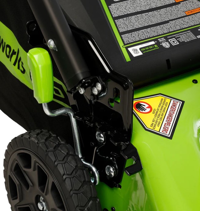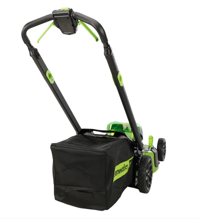 Tackle the toughest yards, one-handed, because our smart mowers never bog down. When grass gets thick, tall, or wet, Greenworks sensors tell our TRUBRUSHLESS motor to rush power to the mower blades. The end result? The perfect lawn, every time. The deck is forged with heavy-duty steel, ready to tackle any terrain. Simple to start with just the push of a button. Gentle on the ears because it mows quietly. A cinch to store in small spaces, and you can even hang it up if you want to. Additional features include a 4-in-1 cutting deck lets you choose your cut finish from mulching, bagging, side discharge, or turbo mode for leaf pick up.