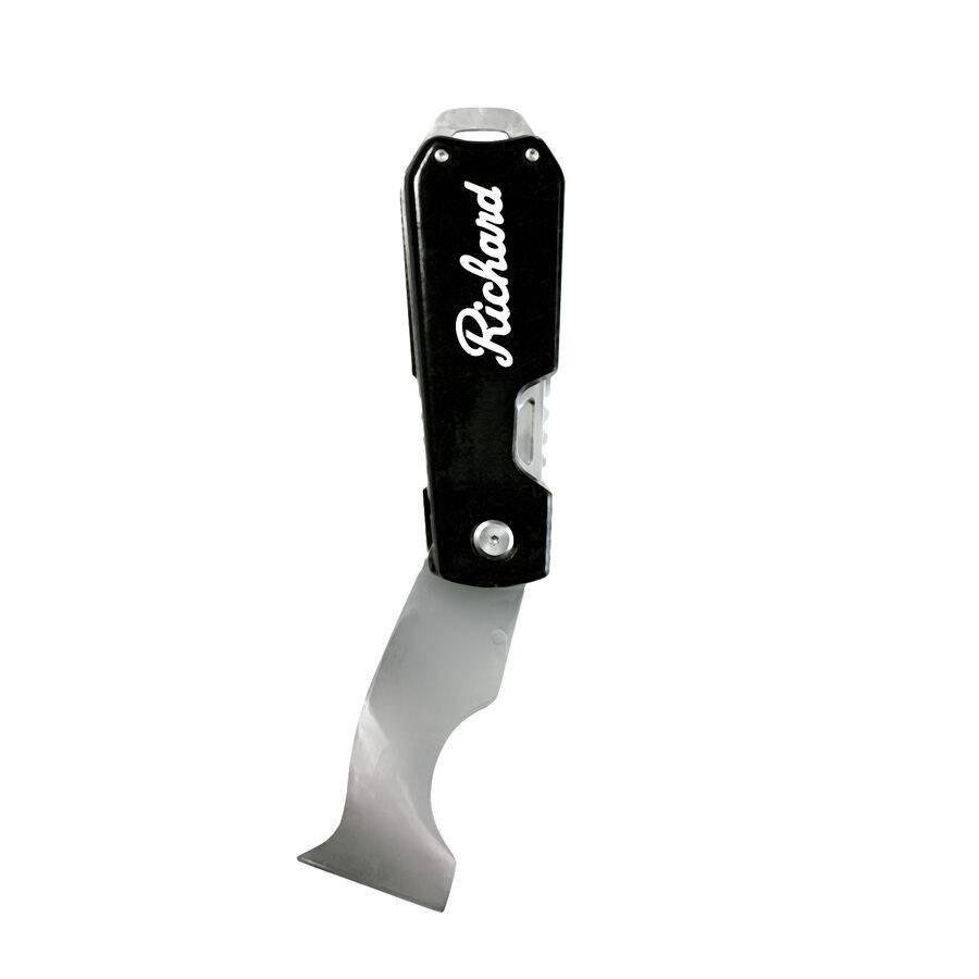 This Folding Painters Tool holds a 5-In-1 Multi Painters Tool that conveniently folds and safely locks closed when not in use. It cleans rollers, opens paint cans, spreads compound, scrapes, and cleans out cracks.