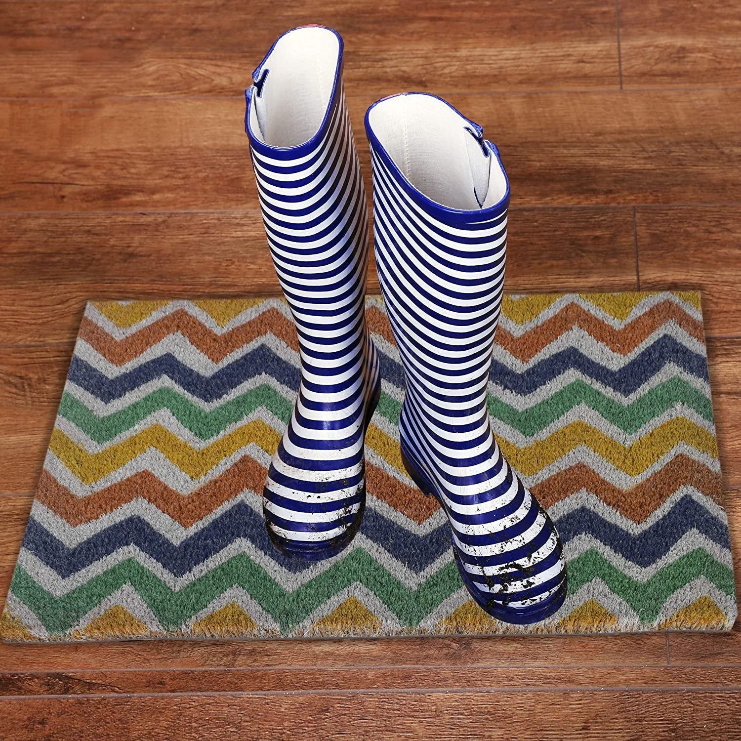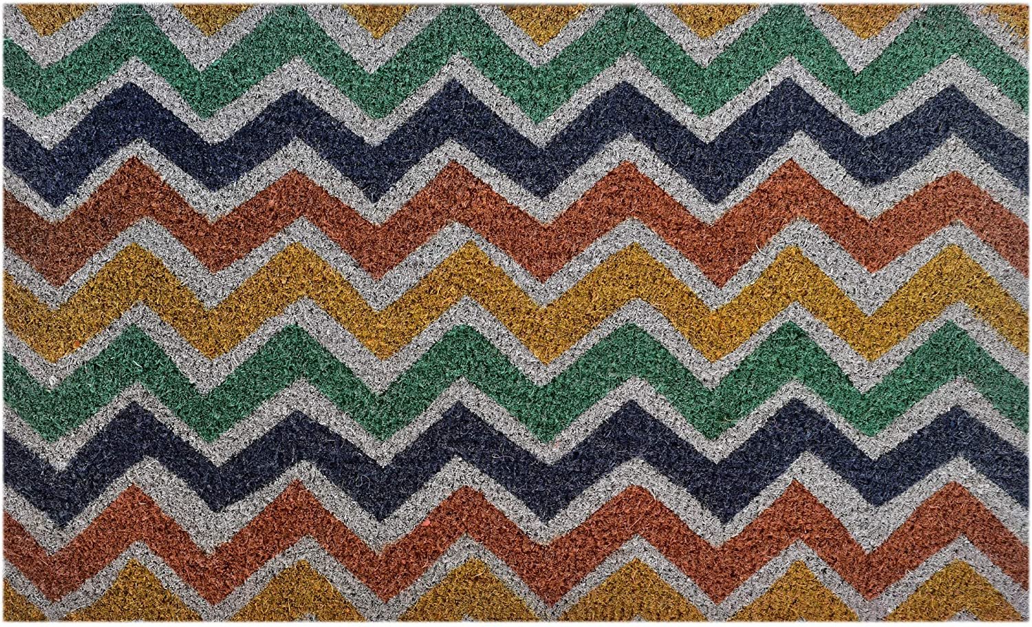 Welcome friends with this modern zigzag pattern doormat that will fit with almost any home decor. Clean messy footwear in style with Ninamar Natural Coir Door Mats. Our designer door mats are made of sturdy coir (coconut husk) fibers that strip dirt & debris from shoes & boots. Natural, biodegradable coir fiber absorbs liquid from footwear, and is weather-resistant. Our popular designs are updated seasonally. Mats are easy to clean, simply shake it out, vacuum, or spray with hose. We stand by our products. If for any reason you are unhappy with your purchase, contact us and we will make it right with you.