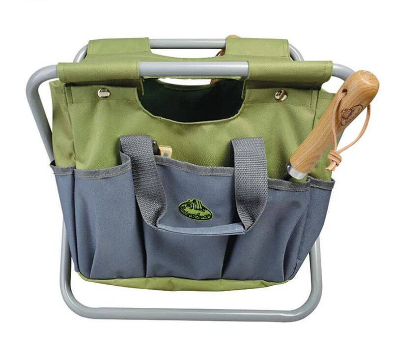 Gardening will become a lot more comfortable and convenient with this garden tool bag and stool from Esschert Design, because you can have a seat while working and will always have your tools within reach.