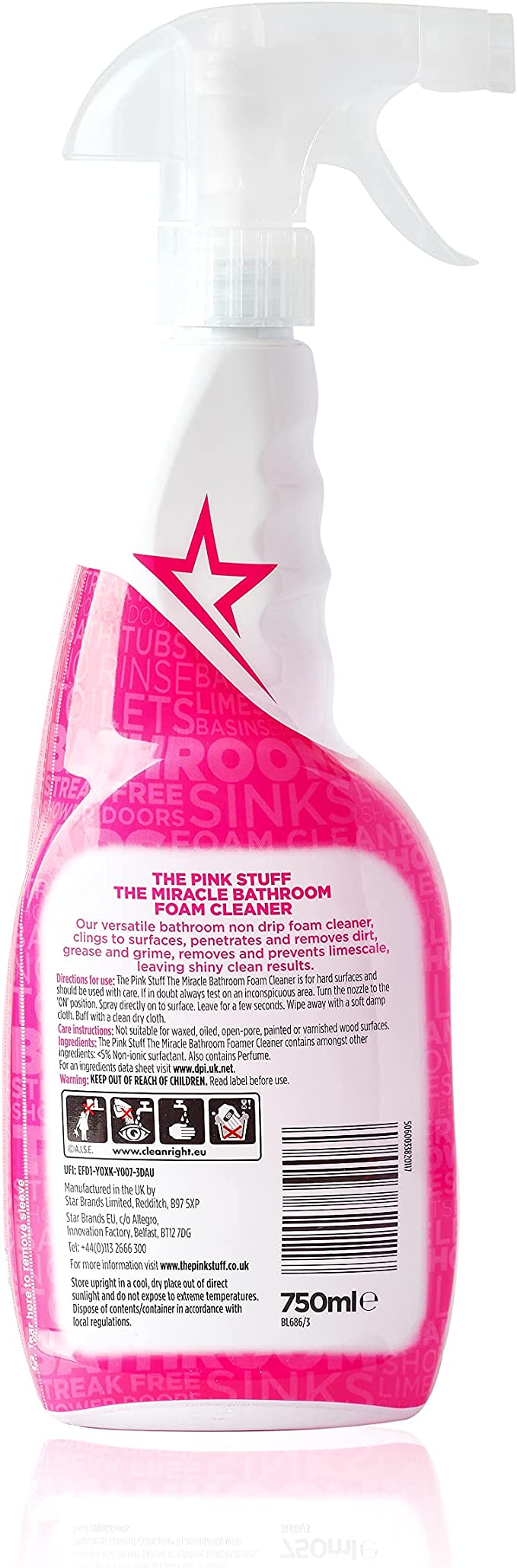 The Pink Stuff Miracle Bathroom Foam Cleaner will make your bathroom sparkle and smell oh-so-good. This non-drip foam cleaner doesn’t only smell fresh and fruity with its amazing Rhubarb scent, but it’s also made with natural, vegan, and cruelty-free ingredients that are a perfect addition to your cleaning supplies! Safe, easy to use, and family-friendly, this hardworking bathroom cleaner removes dirt, grease, soap, and grime from surfaces, leaving them shiny, sparkly, and squeaky clean. In addition to its great smell and incredible cleaning properties, it also removes and prevents limescale, leaving your home pristine, tidy, and fresh. The Miracle Bathroom Foam Cleaner