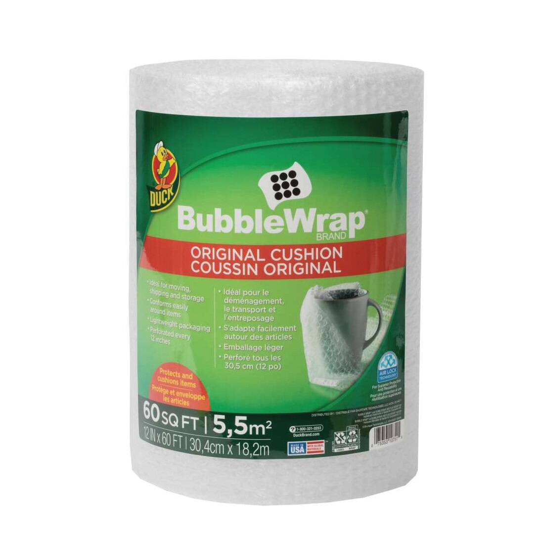 Duck Bubble Wrap, 60 ft Length, 12 in Width, 3/16 in Thickness, Clear, Nylon