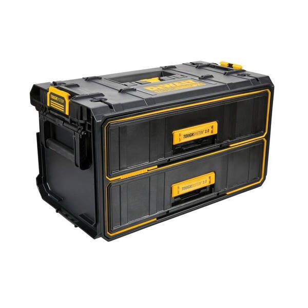 Customize your storage space while maintaining productivity with this ToughSystem® 2.0 two-drawer unit, which is designed to offer convenient access to your tools and attachments on the jobsite. It features two-deep drawers built to securely hold your tools and tool pieces while ball-bearing slides enable smooth drawer motion. Expand your storage space using the unit's patented side latches to quickly connect it with other ToughSystem® modules.