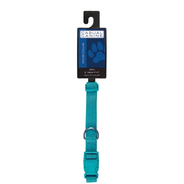 Casual CanineĀ® Nylon Dog Collars are durable and fashionable basics. Each dog collar features a plastic quick-release buckle and a nickel-plated D-ring for leash attachment.