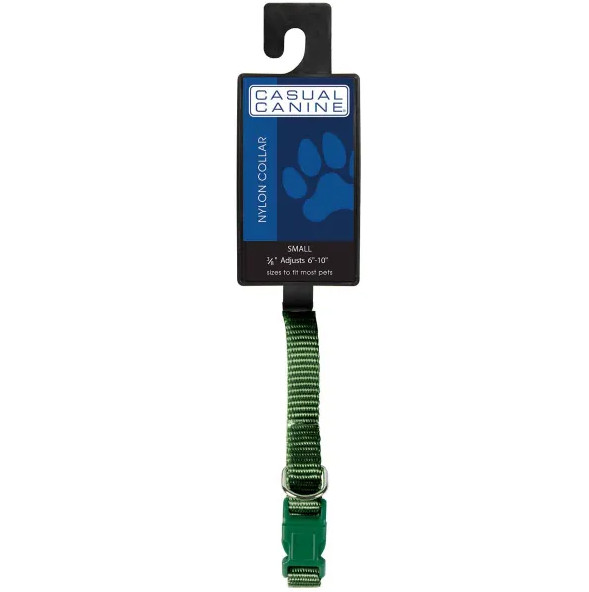 Casual CanineĀ® Nylon Dog Collars are durable and fashionable basics. Each dog collar features a plastic quick-release buckle and a nickel-plated D-ring for leash attachment.