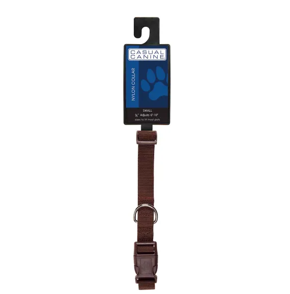 Casual CanineĀ® Nylon Dog Collars are durable and fashionable basics. Each dog collar features a plastic quick-release buckle and a nickel-plated D-ring for leash attachment.
