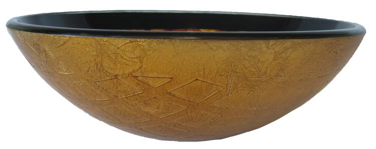 Grata, from the exclusive hand painted vessel collection of Novatto, adds a touch of style and class to any decor. Constructed of high tempered glass, this round vessel sink features a beautiful bold grid pattern of brown and gold tones. The matching faucet disc directs the water flow into a graceful waterfall. Faucet sold separately. Novatto uses advanced technology, including computerized glass processing, to produce glass basins with unmatched structural integrity and longevity. In-house testing has found these glass vessels to be very durable and forgiving. Items such as toothbrushes or small jewelry should not scratch the surface. For best cleaning results, a soft cloth with mild soap and water or a non-abrasive glass cleaner is recommended. Made with the highest standards of quality and creative design, Novatto sinks add art and function to any bath or powder room at an affordable price.
