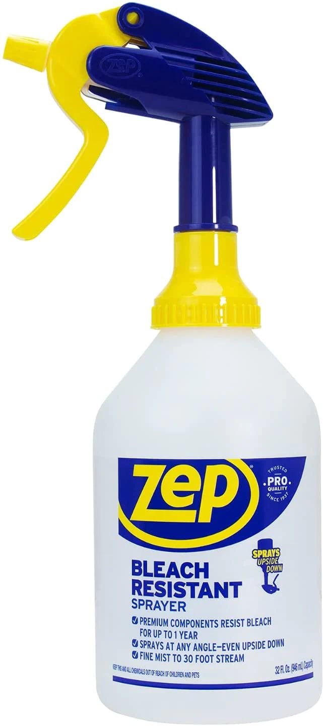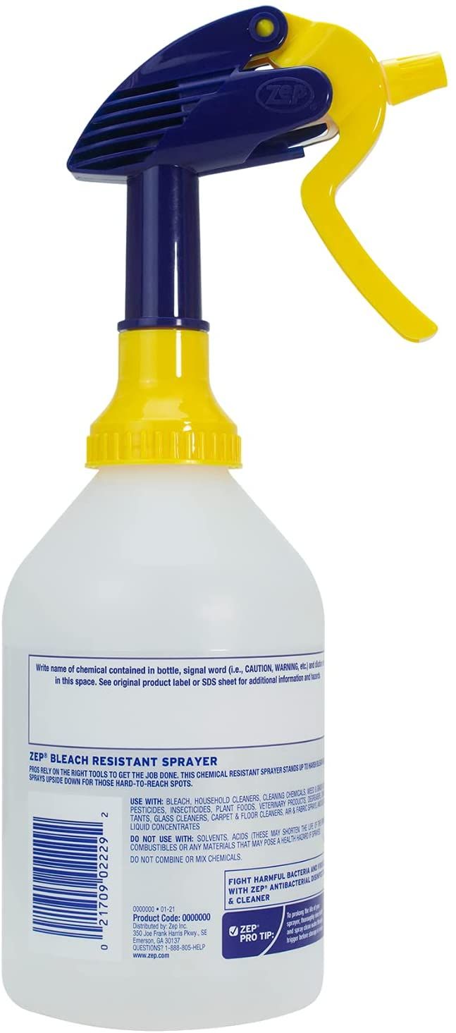The newest addition to the Zep sprayer family! We know that pros rely on the right tools to get the job done. This chemical resistant sprayer stands up to harsh bleach and even sprays upside down for those hard-to-reach spots. Fill with bleach or any of ZepÔÇÖs EPA registered disinfectants or pro-strength cleaners.