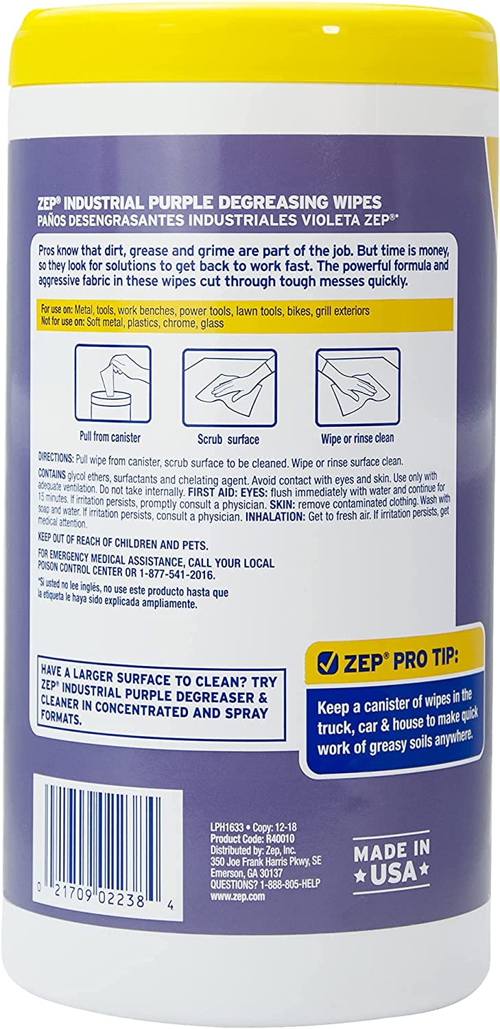 Industrial Purple Degreasing Wipes, 65 Count