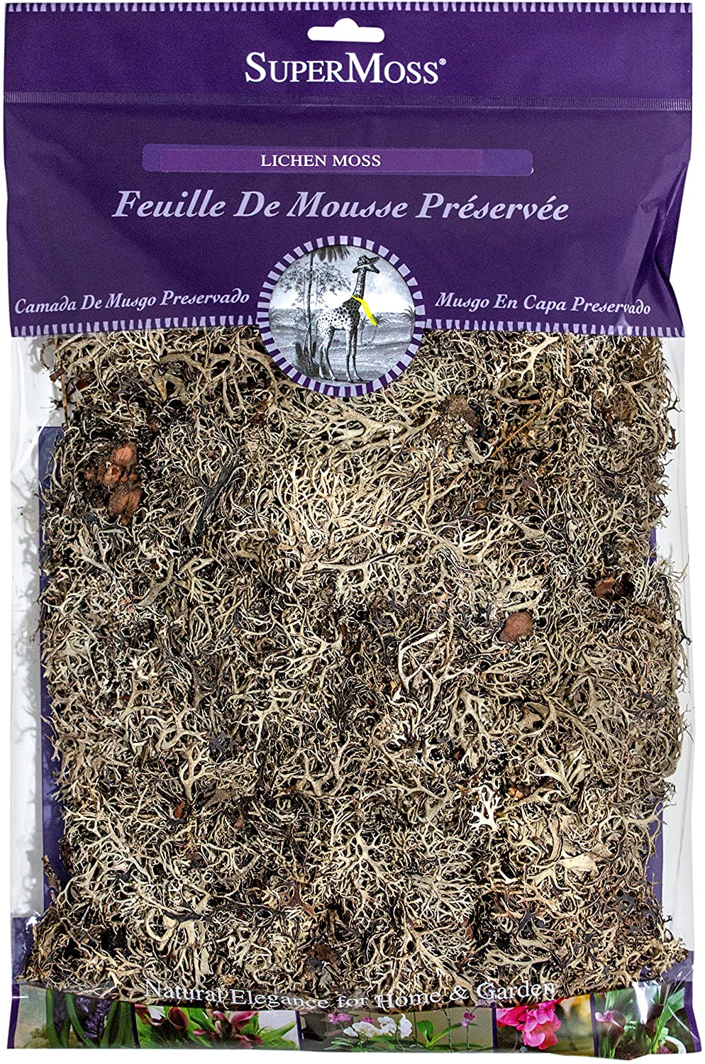SuperMoss Branched Lichen Parmelia are collected branches with stunning, natural lichen that come in natural, preserved, or color enhanced styles to match various types of arrangements. They range in size from 36 44 in tall and 1/2 1 in thick. They are used to decorate ornamental plants, seasonal arrangements, terrariums, and creative projects. Branched Lichen makes a great off-season fireplace dcor used as an accent alongside firewood. Lichen has natural and unique variations in size and texture to create natural beauty only found in nature. Our product is long-lasting and may be stored and re-used.