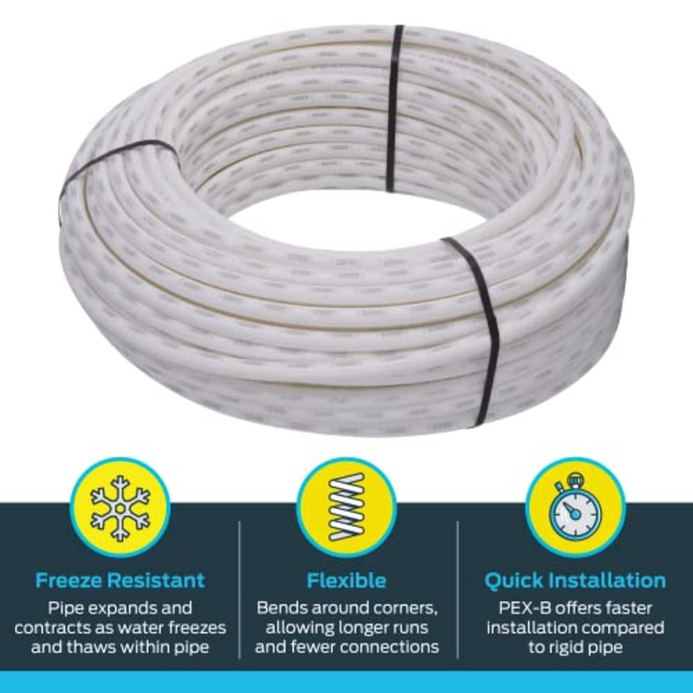 Faster installation compared to rigid pipe. Flexibility to bend pipe around corners, reducing the number of connection points needed. 300 ft in length, allowing longer runs and fewer connections -- reducing cost, time and potential leak points. Freeze-resistant pipe can expand slightly if frozen and contract when thawed. Ideal for hot and cold potable water distribution, fire protection and municipal water service lines.