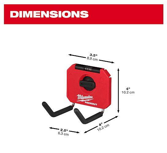Our PACKOUT™ 4" Straight Hook delivers the most secure mounting when paired with PACKOUT™ Wall Plates, strongly holding the PACKOUT™ solution mounted to the wall. This hook is constructed with metal reinforcement to maintain shape when loaded and is optimized to store power tools, hand tools, and more. To keep your tools securely in place and protected, our hook features protective rubber grips. Additionally, our hook features connectivity with PACKOUT™ solutions allowing you to fully customize your shop, MILWAUKEE® PACKOUT™ is the industry's most versatile and durable modular storage system.