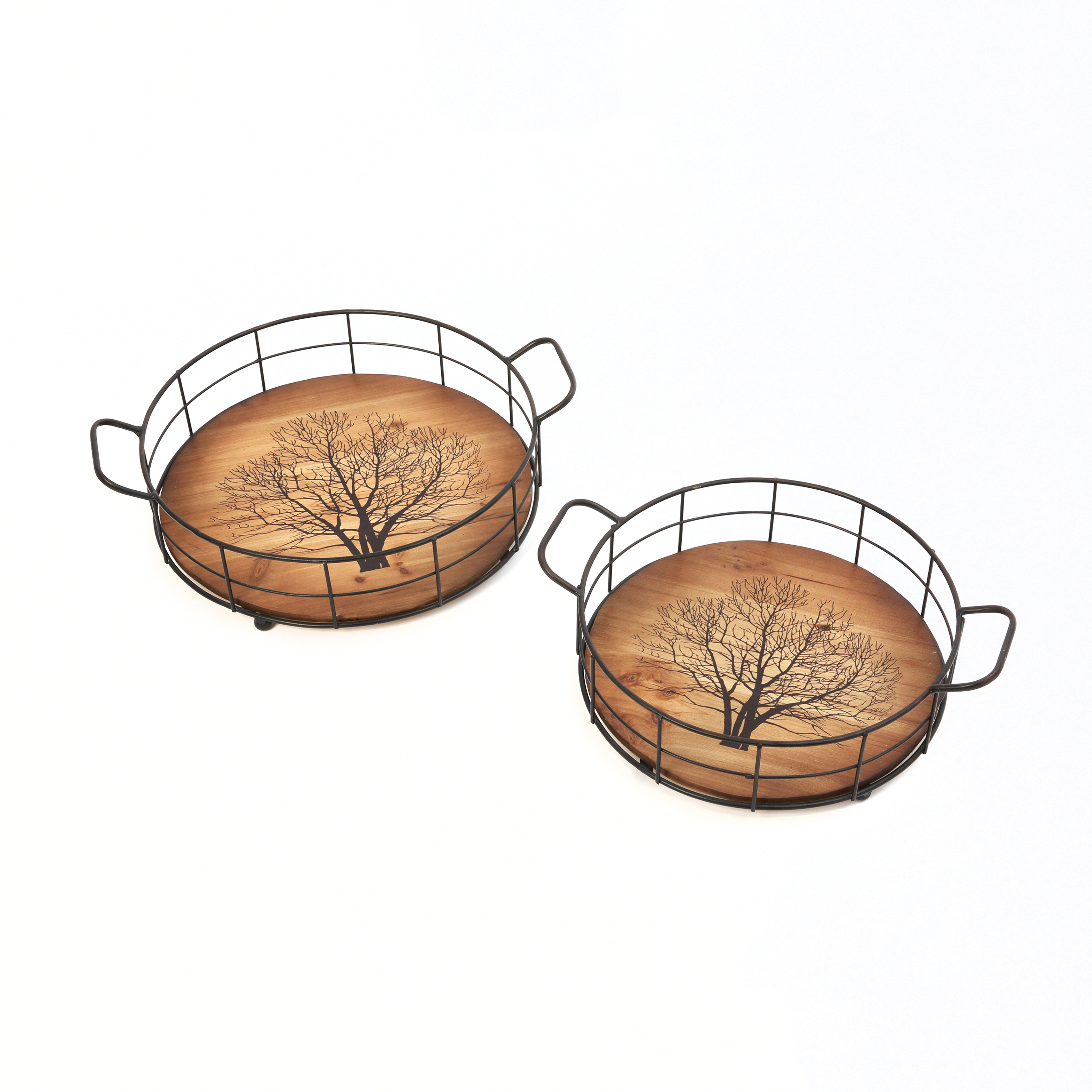 S/2 Nested Metal and Wood Trays, Lg is 17.5"L
