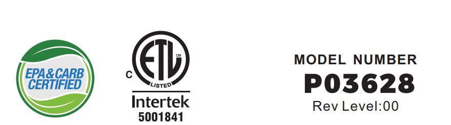 | Certification, Codes, Standards | EPA, CARB Certified, cETL, and NOM Certified |