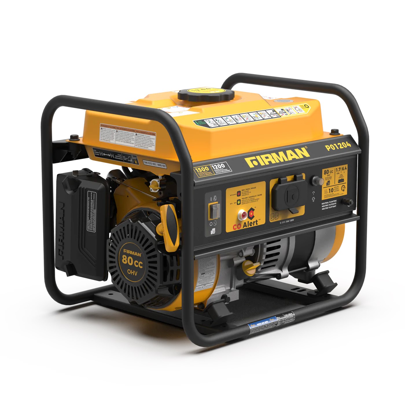 Known for its lightweight design and ease of use, the FIRMAN P01204 gas portable generator offers 1200 running Watts and 1500 Starting Watts and is the ideal companion for those on the go.