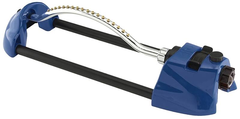 The ColorStorm Oscillating Sprinkler has 18 brass nozzle jets to provide uniform watering and includes a needle-plug for easy cleaning of the nozzle jets. The adjustable dial and tab deliver various water patterns and spray distances for lawn care and kid’s water fun. This sprinkler covers an area of up to 3,036 Sq. Ft. (66 ft x 46 ft) and is constructed of heavy-duty metal and brass for durability. The ColorStorm Oscillating Sprinkler’s sleek design and eye-catching color accent your lawn while providing even watering. Any of the ColorStorm Oscillating Sprinklers can be color coordinated with Dramm’s ColorStorm Premium Rubber Hose.