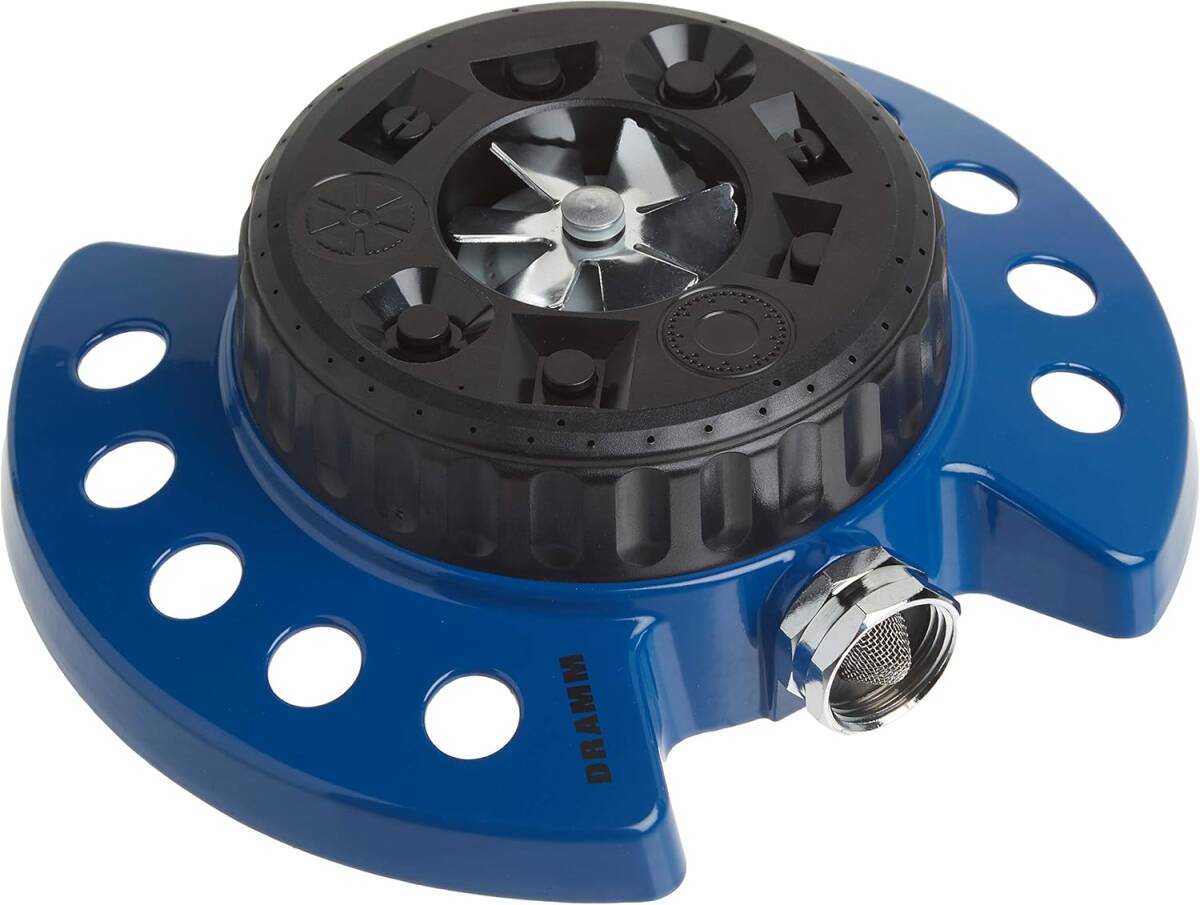 The ColorStorm Turret Sprinkler features 9 water patterns, perfect for lawn and garden care, plus great for kids. Allows the flexibility to only water the area you need. Works for small and large yards. This popular tool has a durable, heavy-duty metal base with a molded hook for easy storage. Accent your lawn with superior design and function with this sprinkler.