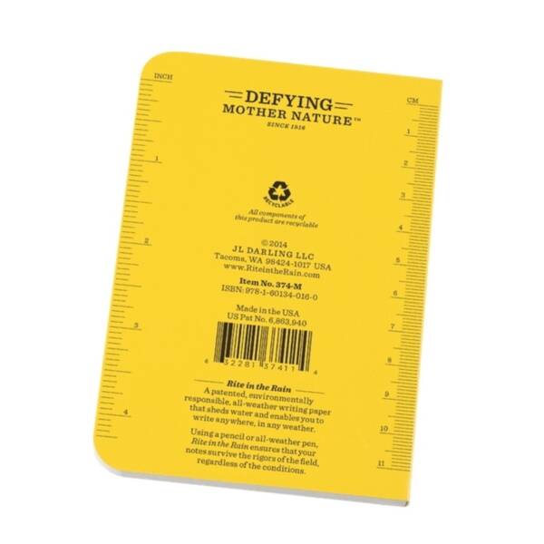 Field-Flex is our most flexible cover material. The paper-based stock is tough enough to withstand the harshest and wettest conditions yet can be torn like heavy paper. As it's paper-based, it can be recycled with other papers. These are some of the best pocket books as the covers will conform to your shape in very little time. Perfect bound books are made by grinding the ends off folded sheets (called signatures) then gluing them to a cover stock. Our perfect bound books use only the most durable glues to ensure your rite in the rain book won't fall apart in the field. As with most perfect bound books, the text sheet edges are flush with the cover. We take the extra step of round-cornering our books. This improves durability and protects you from annoying sharp corners. The handy pocket-sized Field-Flex books are great for stowing in tight spots but still large enough to take all your data, whether it be a landmark, coordinates, animal sighting or a phone number, you can trust these little notebooks with the information you gather.