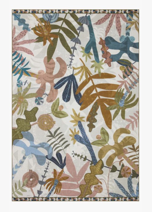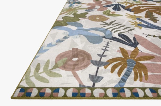 Add personality to a living room, patio, and kitchen alike with this collection of illustrative tropical motifs. Created in collaboration with Justina Blakeney, the Pisolino Collection is power loomed of 100% polyester pile in vibrant colors.