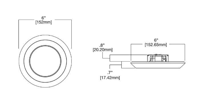 4" Surface LED Downlight,600 lumens,90CRI Field selecctable,120V, phase cut 5% dimming driver, Matte White Finish.