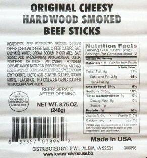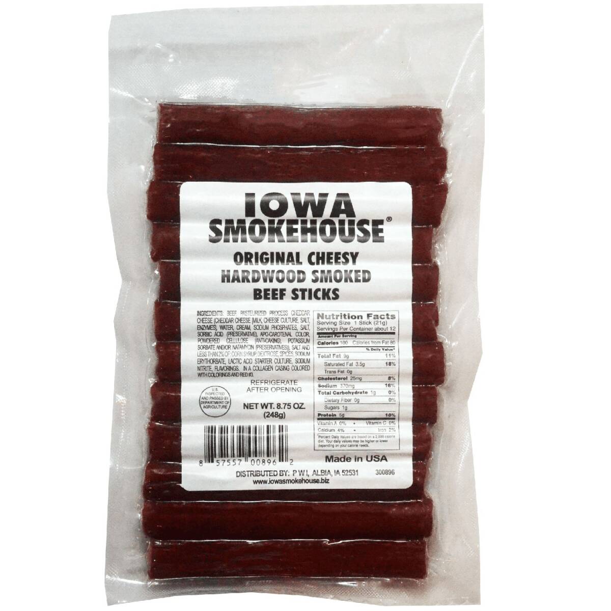 Iowa Smokehouse® Hardwood Smoked Original Cheesy Beef Sticks: Our hardwood smoked beef sticks satisfy your meat craving; these have to be the best meat sticks ever! Moist and chewy with that distinct hickory smoke flavor. Why settle for less?