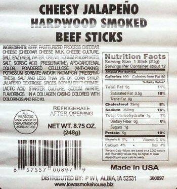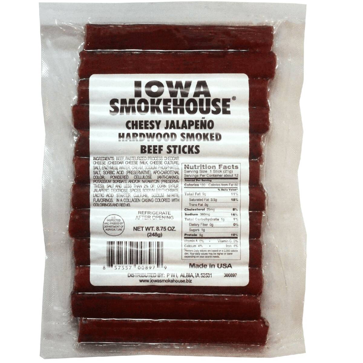 Iowa Smokehouse® Hardwood Smoked Cheesy Jalapeno Beef Sticks: Our hardwood smoked beef sticks satisfy your meat craving; these have to be the best meat sticks ever! Moist and chewy with that distinct hickory smoke flavor. Why settle for less?