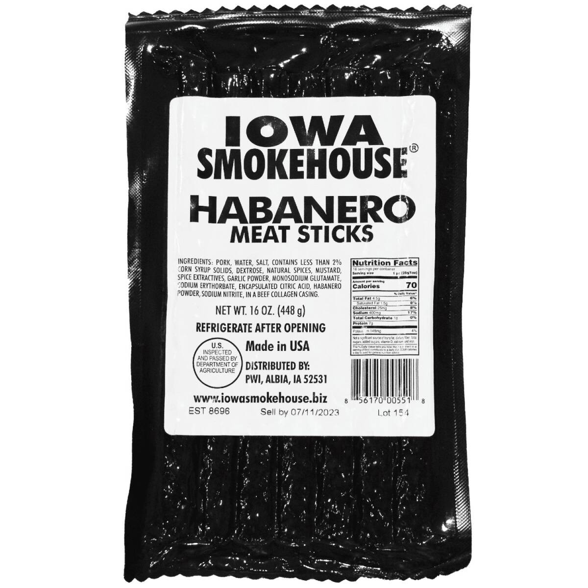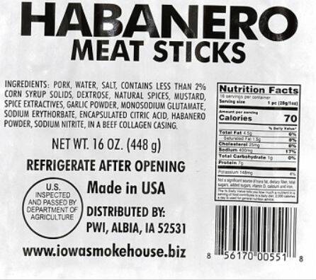 Iowa Smokehouse® Habanero Meat Sticks: Delicious meat sticks, in an affordable 16 oz package, that are perfect for the hunting camp or taking with you out in the field for those long days of bundling haybales.