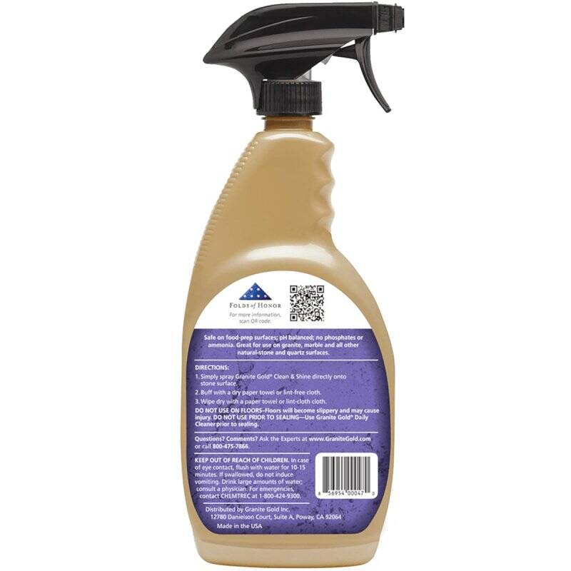 Save a little time cleaning and polishing granite, marble, travertine and all other natural-stone and quartz surfaces. Granite Gold Clean & Shine® combines the best of both Granite Gold Daily Cleaner® and Granite Gold Polish® to quickly and easily remove spills and soils, leave a fresh citrus scent and add shine and luster.