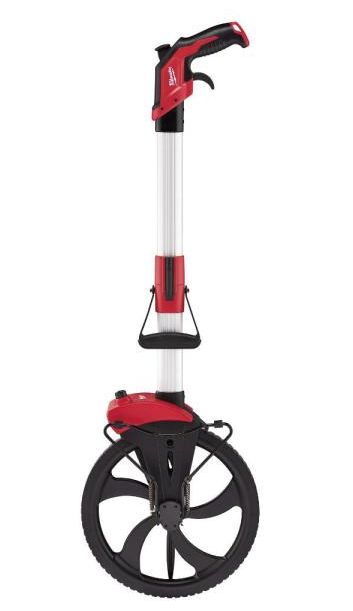 The Milwaukee 12 inch Measuring Wheel was designed for extreme durability, increased ergonomics, and productivity. Constructed of reinforced aluminum frames and reinforced folding joints, the Milwaukee measuring wheels are able to withstand the toughest jobsite conditions. Durable locking pivot points help quickly fold the units for transportation and storage. To prevent build-up of dirt and grime that could potentially jam the wheel, the 12 inch Measuring Wheel has also been designed with a Debris-Cleaning Wheel Flap that easily clears away contamination while rolling. In addition, the 12 Inch measuring wheel also includes a reinforced kick stand. The pistol grip handles, designed to provide similar ergonomics to that of a power tool handle, fitting the hand of the user better than other wheels on the market. These handles feature a top brake function that can be used to lock the wheel and the reading, increasing accuracy. The 12 inch Measuring Wheel is also designed with a top handle clearing function for easier use, allowing the user to reset for each measurement without bending over.