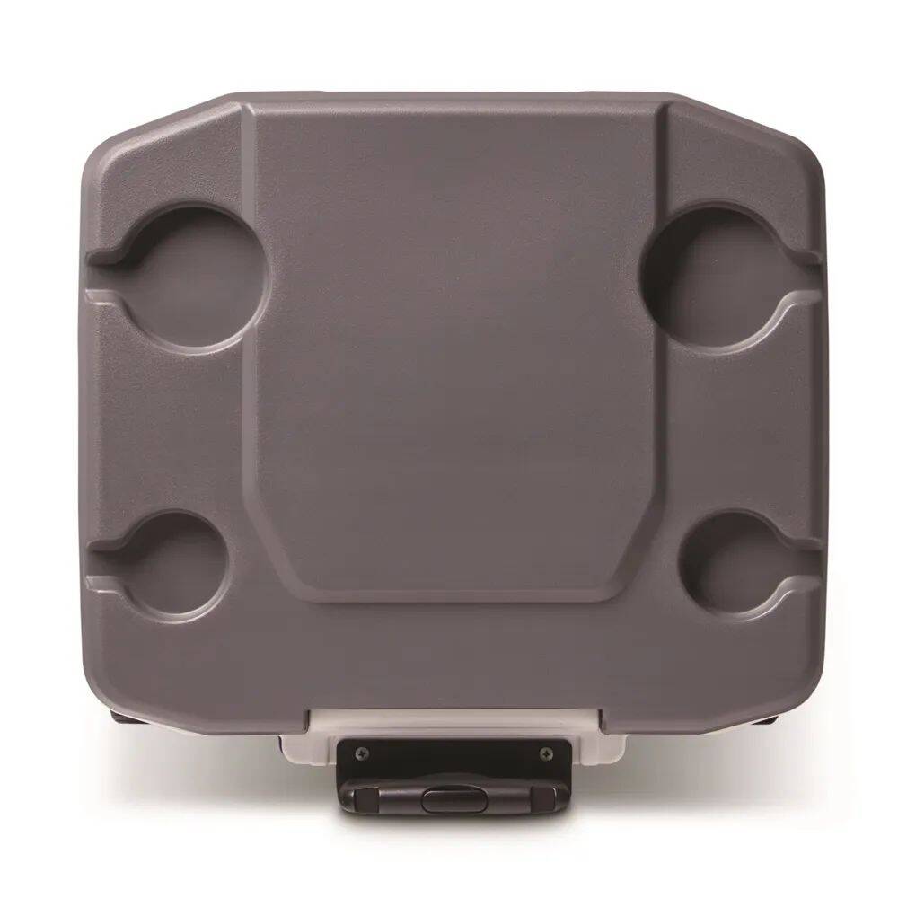 This IGLOO LATITUDE Hard Cooler has a cooler capacity of 60 qts, is made of Polyethylene material, and has a color combination of Indigo Blue on the body and a Meteorite lid. It has a locking, telescoping handle and two, moulded scoop handles for easy transport.
