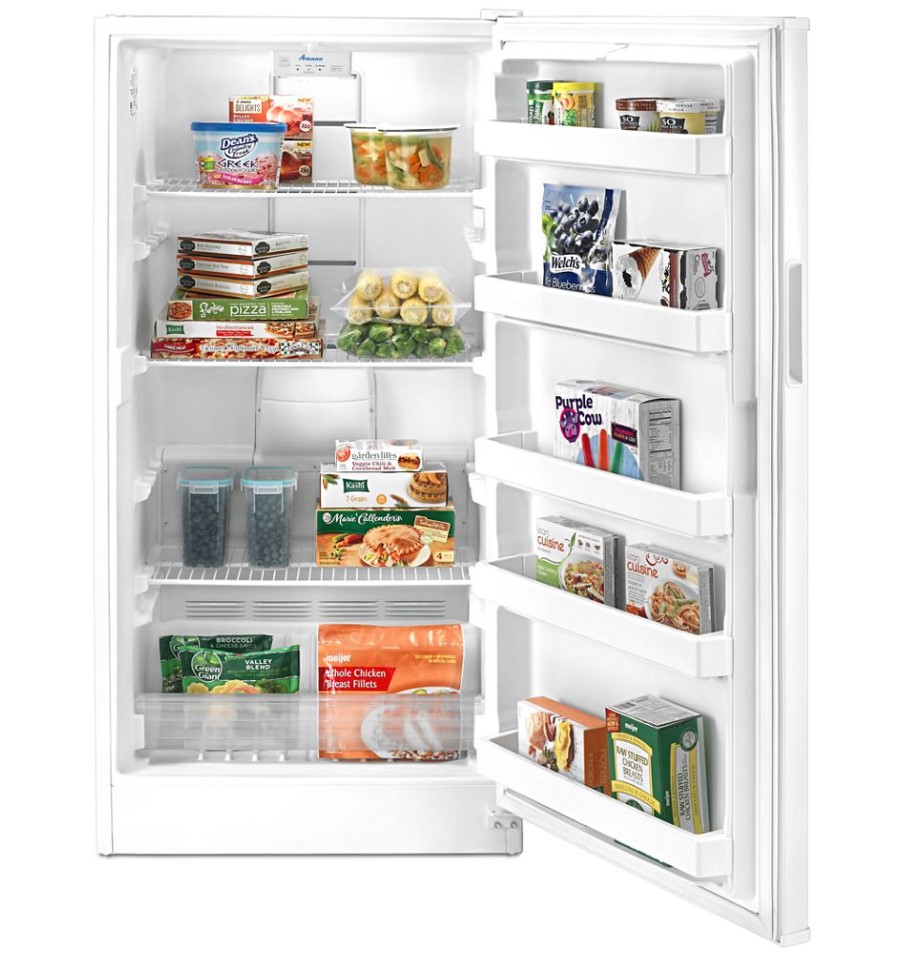 This 16 cu. ft. Amana® Upright Freezer comes with Energy-Saving Insulation, which helps lower the global warming potential of your freezer by 99.9%. You can also chill large amounts of foo by using the Fast Freeze Option, which can cool down the entire freezer.