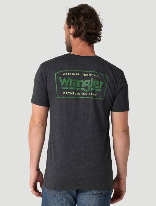 Since 1947, Wrangler® has been creating high-quality denim for cowboys, trendsetters, and everyone in between. Become a part of that legacy with Wrangler’s original denim company regular fit t-shirt. Made of a lightweight cotton blend, this shirt is a testament to the quality craftsmanship and American design that has made Wrangler a household name. On the back, it features an original logo design inspired by an advertising campaign to add a bit of heritage style to your look. Wear it with your Cowboy Cut® jeans for a look that celebrates your favorite denim brand from head to toe.
