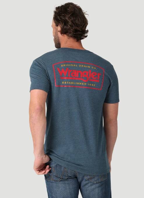 Since 1947, Wrangler® has been creating high-quality denim for cowboys, trendsetters, and everyone in between. Become a part of that legacy with Wrangler’s original denim company regular fit t-shirt. Made of a lightweight cotton blend, this shirt is a testament to the quality craftsmanship and American design that has made Wrangler a household name. On the back, it features an original logo design inspired by an advertising campaign to add a bit of heritage style to your look. Wear it with your Cowboy Cut® jeans for a look that celebrates your favorite denim brand from head to toe.