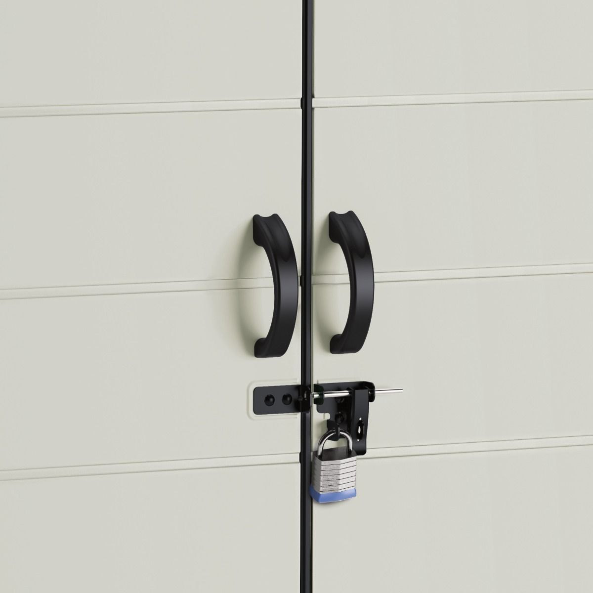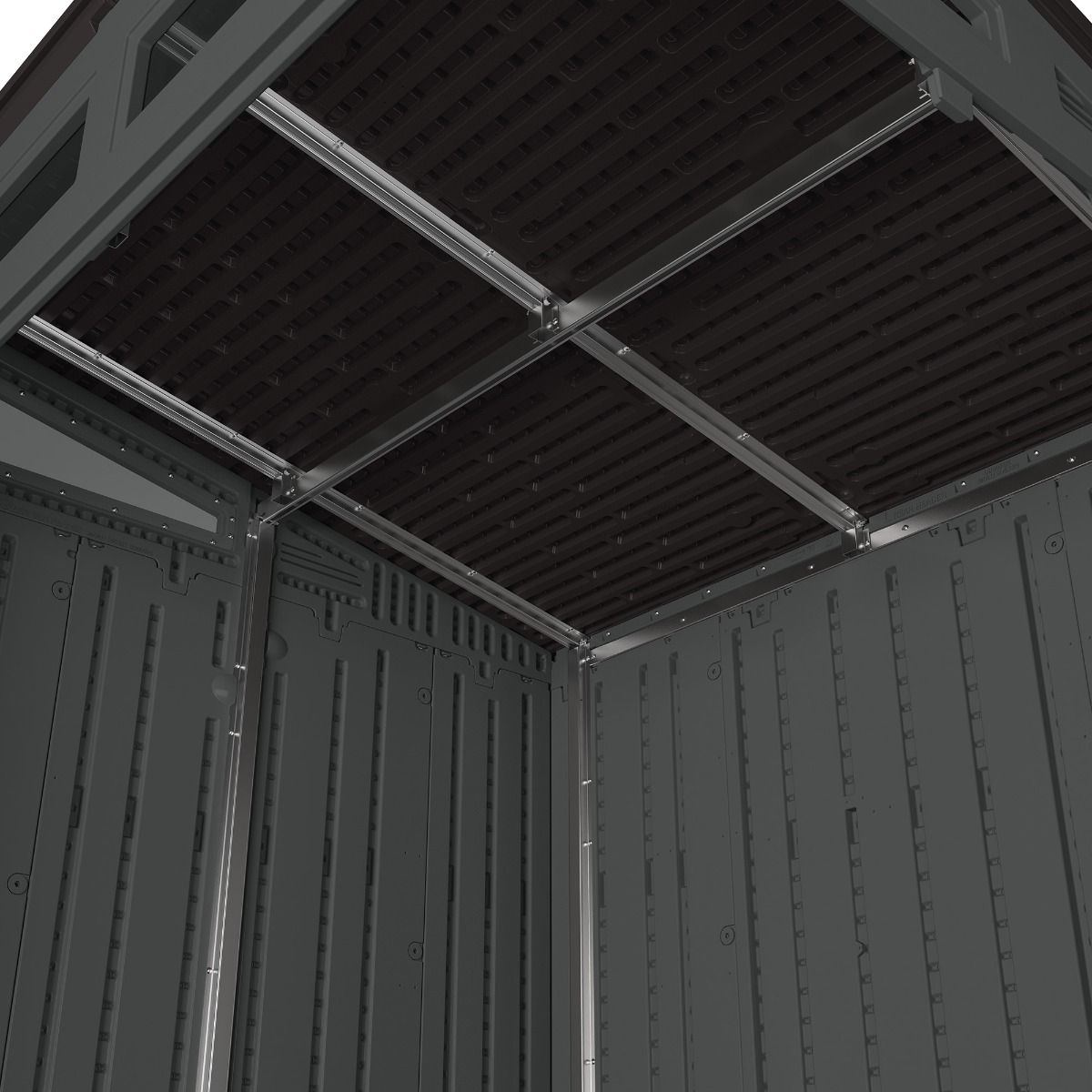 A combination of strength and storage, the 6 ft. x 5 ft. Modernist® Storage Shed by Suncast® is the perfect fit for anyone looking to upgrade their storage capabilities. Featuring 200 cubic feet of storage space this shed is ideal for storing all your outdoor equipment. A steel frame structure and multi-wall resin panels provide maximum strength and durability, even under heavy roof snow loads. Sturdy double doors allow you to access your items easily, and the doors are pad-lock ready for added security (lock not included). Large transom windows allow for natural light making it easy to find what you need. This shed is beautiful, strong and built to withstand the elements all year long.