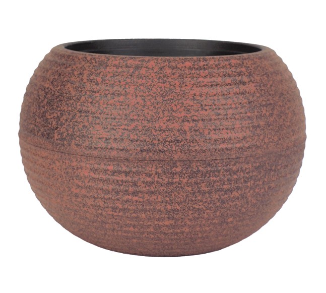 Premium plastic planter with a two-piece construction. Unique globe planter with a painted textured finish. Drain hole for proper plant care.