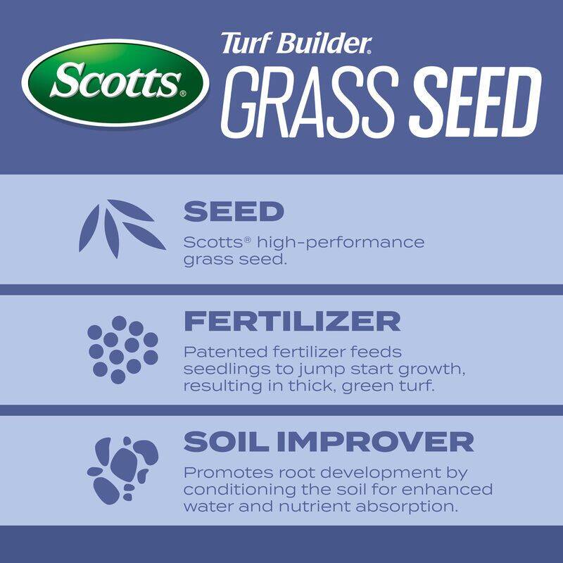 Scotts® Turf Builder® Grass Seed Heat-Tolerant Blue® Mix for Tall Fescue Lawns resists extreme heat. This mix contains Root-Building Nutrition, a combination of ingredients that is expertly crafted to help establish deep roots to grow thick, green turf so that you can build a better, stronger lawn from the roots up. Scotts® Turf Builder® Grass Seed Heat-Tolerant Blue® Mix for Tall Fescue Lawns is designed for full sun and partial shade, and has medium to high drought resistance with medium to high durability. It can be used to seed a new lawn or overseed an existing lawn. For best results, apply in the spring or fall when daily average soil temperatures are consistently between 60-degrees F and 75-degrees F or air temperatures are between 65-degrees F and 85-degrees F. We recommend using a Scotts® spreader to apply this product (please refer to spreader settings on product label). Water daily or as needed to keep the soil surface moist until the seedlings reach at least 2 inches tall. One 5.6 lb. bag of Scotts® Turf Builder® Grass Seed Heat-Tolerant Blue® Mix for Tall Fescue Lawns has a new lawn coverage of 465 sq. ft. and an overseeding coverage of 1,400 sq. ft.