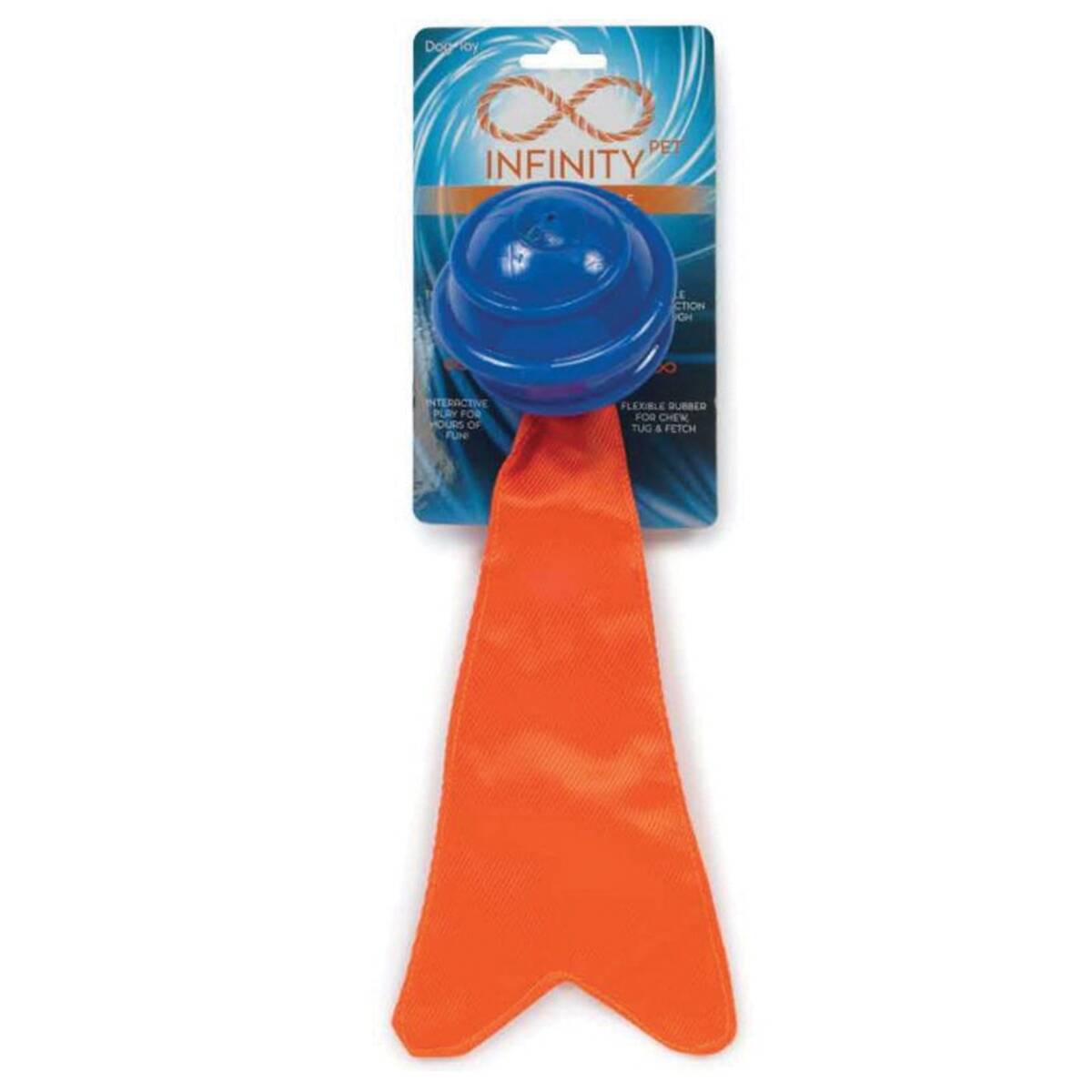 When dogs stay indoors for too long, cabin fever sets in. Our Infinity™ spiral ball with ballistic tail is just the ticket for relieving all that energy - squeak it, launch it. Dogs can't wait to play with this toy. Our Infinity™ spiral ball with ballistic tail is sure to help burn off a dog's mad energy, plus it's great for bonding, too.