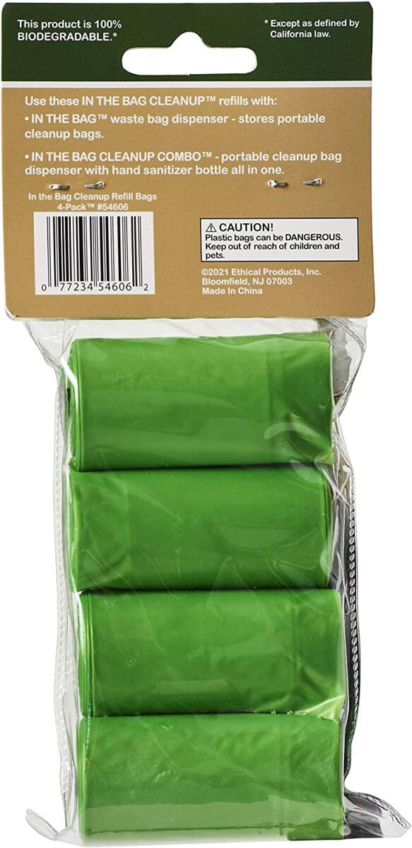 In The Bag, Green, Biodegradable, Cornstarch Clean-Up Refill Waste Bag, 10 Bags Per Roll, 4 Rolls
