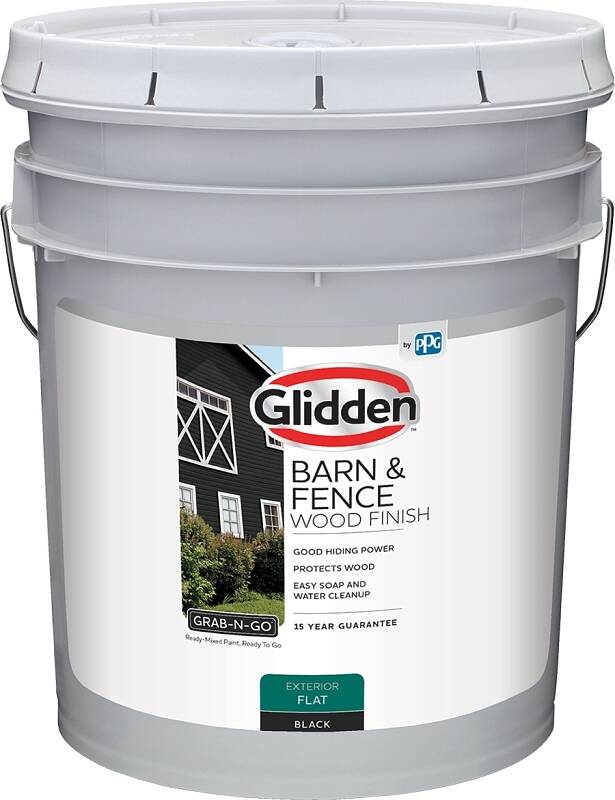 Glidden® Grab-N-Go™ Barn & Fence Exterior Flat is an exterior finish for properly prepared new or previously painted wood substrates. Product may also be used for incidental application on properly prepared and primed aged masonry, fiber cement board, and metal. Do not use on vinyl siding, steps, walkways, floors or other traffic areas