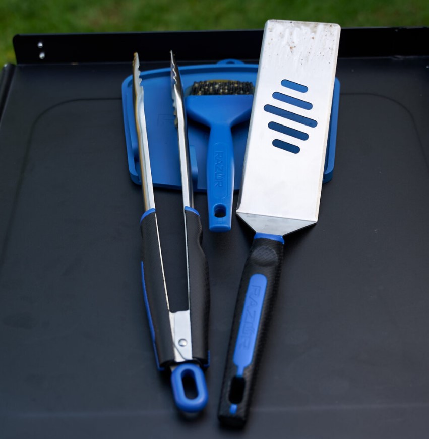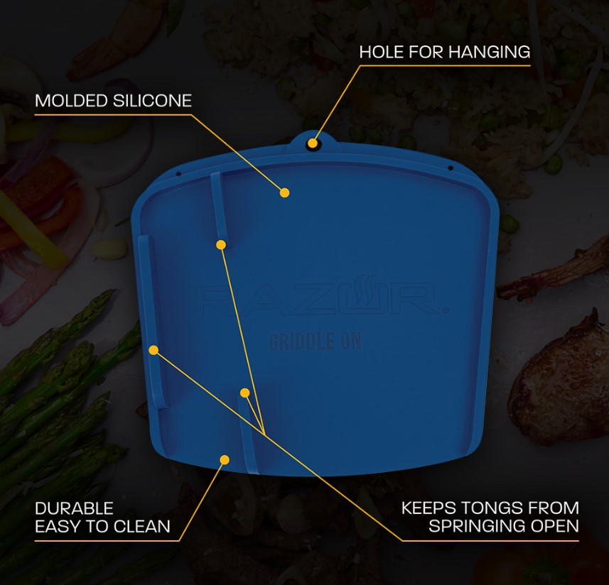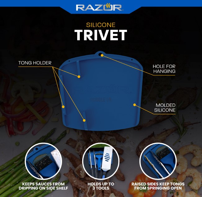 Keep organized with the Razor® Silicone Trivet. A handy tool made of non-stick molded silicone which is great for heat resistance and a fast clean-up. The Silicone Trivet is designed with a built-in divider to prevent tongs from springing open. It’ll help to keep tools organized and the griddle side shelf clean.