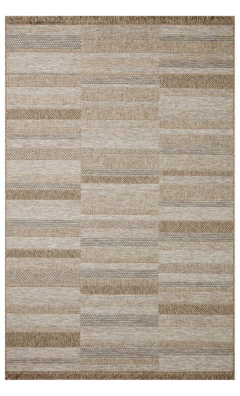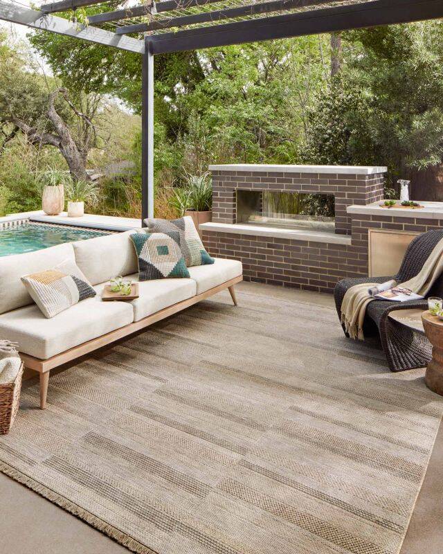 Made for sunny days ahead, the Dawn Collection is an indoor/outdoor rug that looks like a woven sisal rug but is power-loomed of 100% polypropylene, which makes it water- and mildew-resistant (so it's ready for rainy days ahead, too). Available in modern graphic patterns in tonal beige neutrals, Dawn has a short edge fringe that adds a playful and elevated feel to a rug that can handle a lot of foot (or paw) traffic whether outside on a patio or in a busy mudroom. Rinse off with a hose when needed.