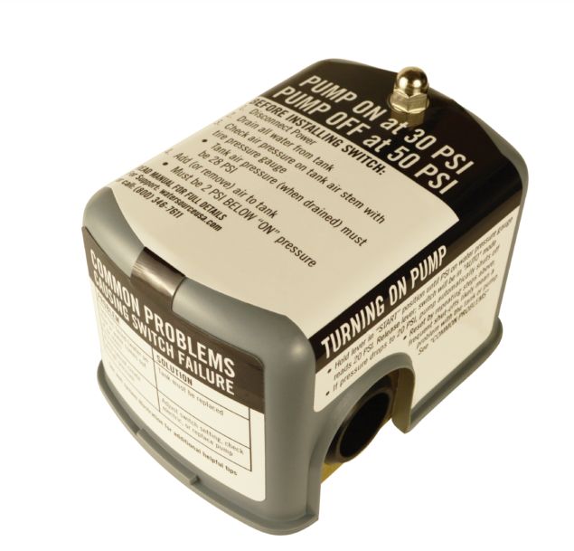 For automatic operation of jet and submersible well pumps when used in conjunction with a diaphragm pressure tank or galvanized tank. 30-50 PSI.