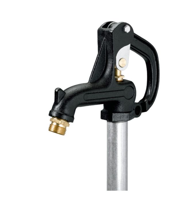 Shut-off valve operates below the frost line to supply running water, even in the coldest weather. Yard hydrants work on your existing fresh-water system, municipal water and private wells. 3/4″ FPT Inlet, 1″ Stand-pipe. Cast-iron head can be locked with padlock. Rod, plunger, seat and linkage are replaceable without digging. Maximum water pressure 120 PSI. Consult local climate and frost line depths for best bury depth selection.