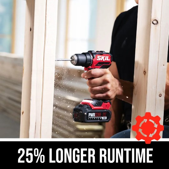Drive through a variety of surfaces with power and precision with the SKIL PWRCORE 20™ 20V Brushless ½-Inch Drill Driver. This compact cordless drill’s digital brushless motor delivers up to 450 inch-pounds of torque in every drive, and its variable-speed trigger and 17 torque settings plus drill mode provide maximum control for every project. Change bits quickly and easily with its ½-inch single-sleeve keyless ratcheting chuck, and light up your workspace for up to 10 minutes with the LED work light with pre-light and after-glow.