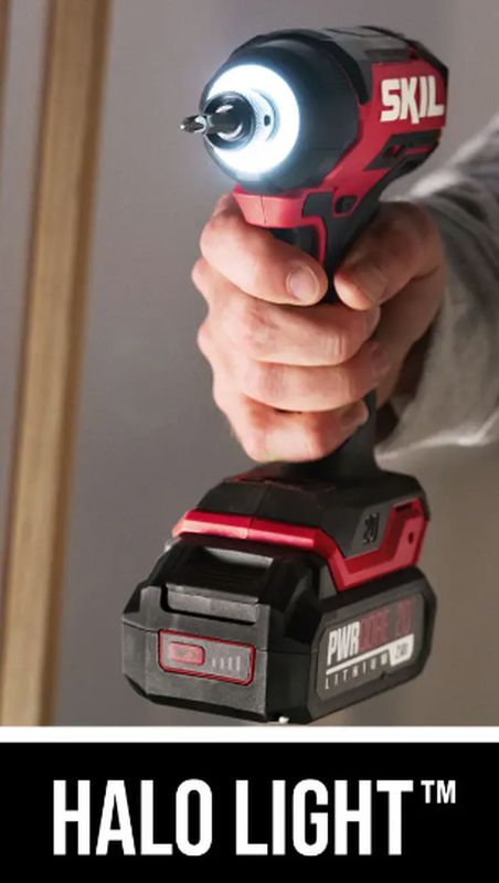 From renovating kitchen cabinets to building a swing set in the back yard, drive through dense woods with power and precision with the SKIL PWRCORE 20™ Brushless 20V 1/4-Inch Hex Compact Impact Driver. This compact yet powerful cordless impact driver can loosen larger bolts, drive screws through thick surfaces, and take on the toughest materials. Its digital brushless motor provides up to 1,800 inch-pounds of torque in every drive, and the advanced Control Mode senses when the fastener tightens, helping eliminate screw cam-out and cross-threading. Its HALO LIGHT™ provides 5X more light than common LEDs and enjoy fast and secure one-handed bit insertion with the one-handed collet.